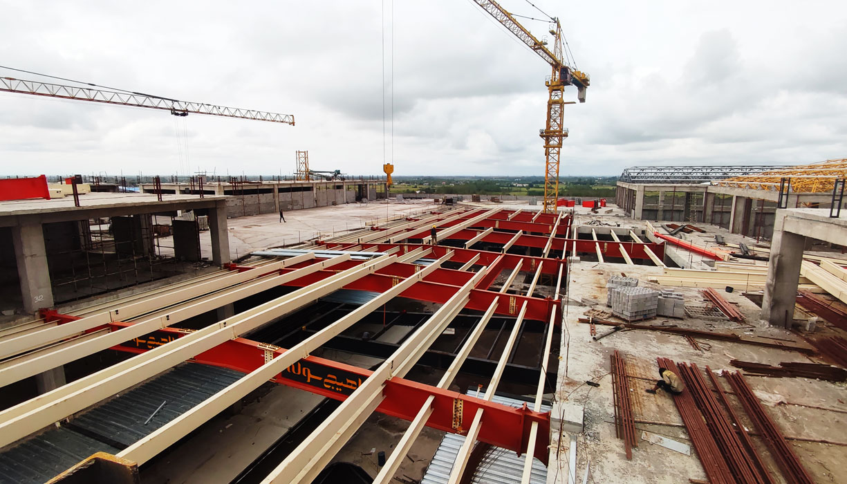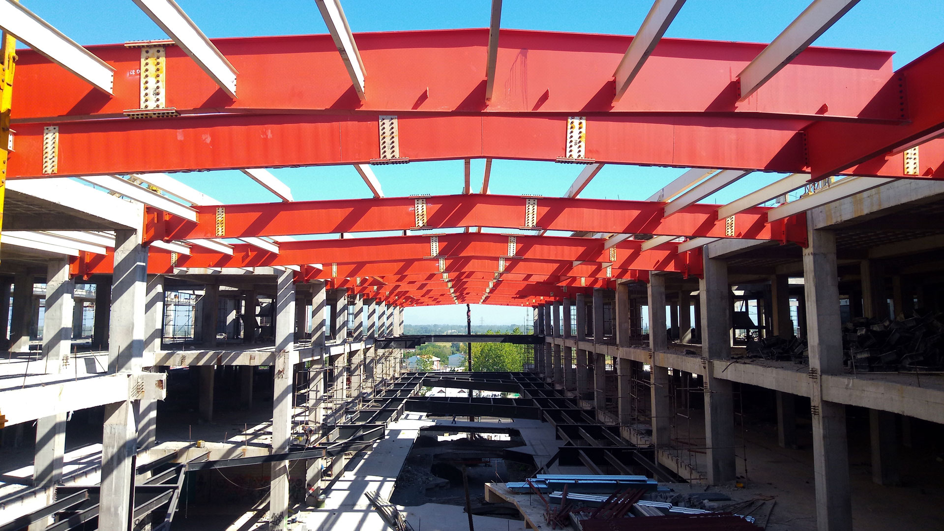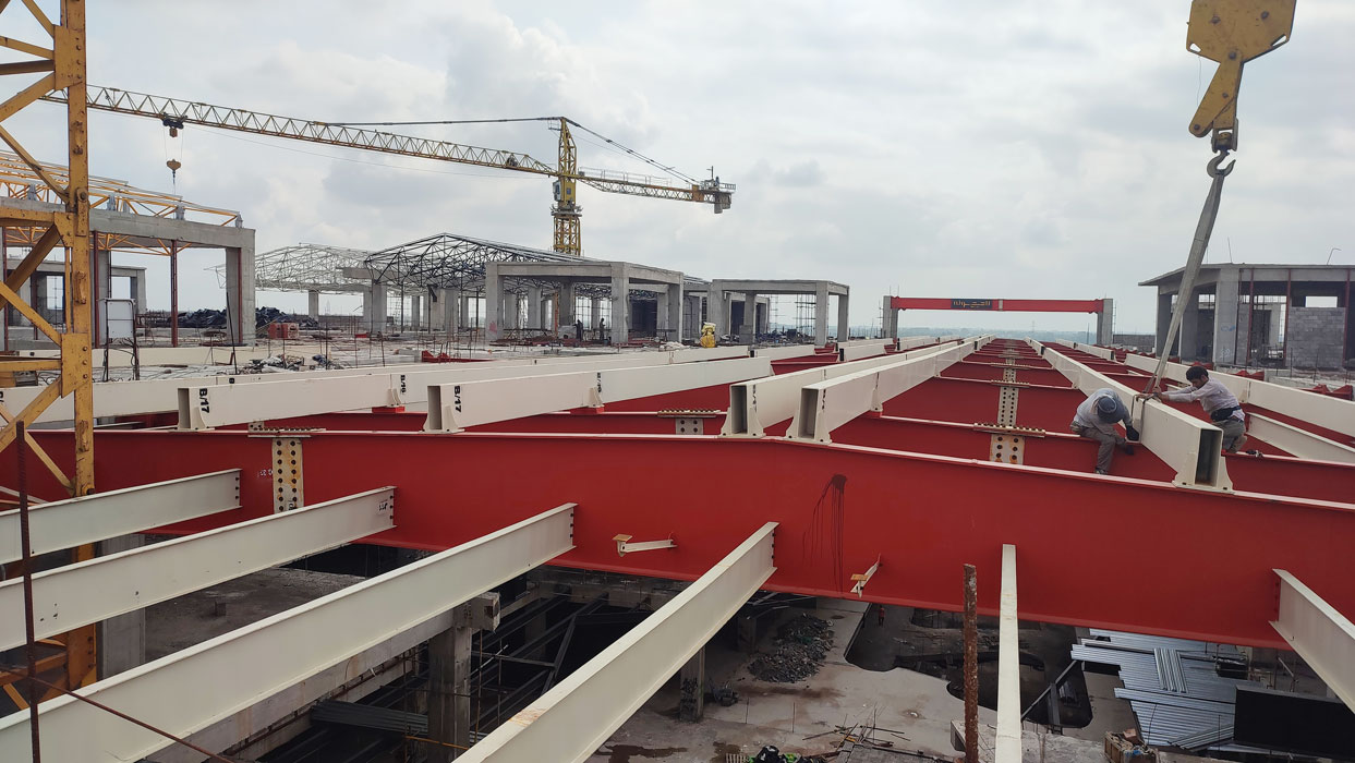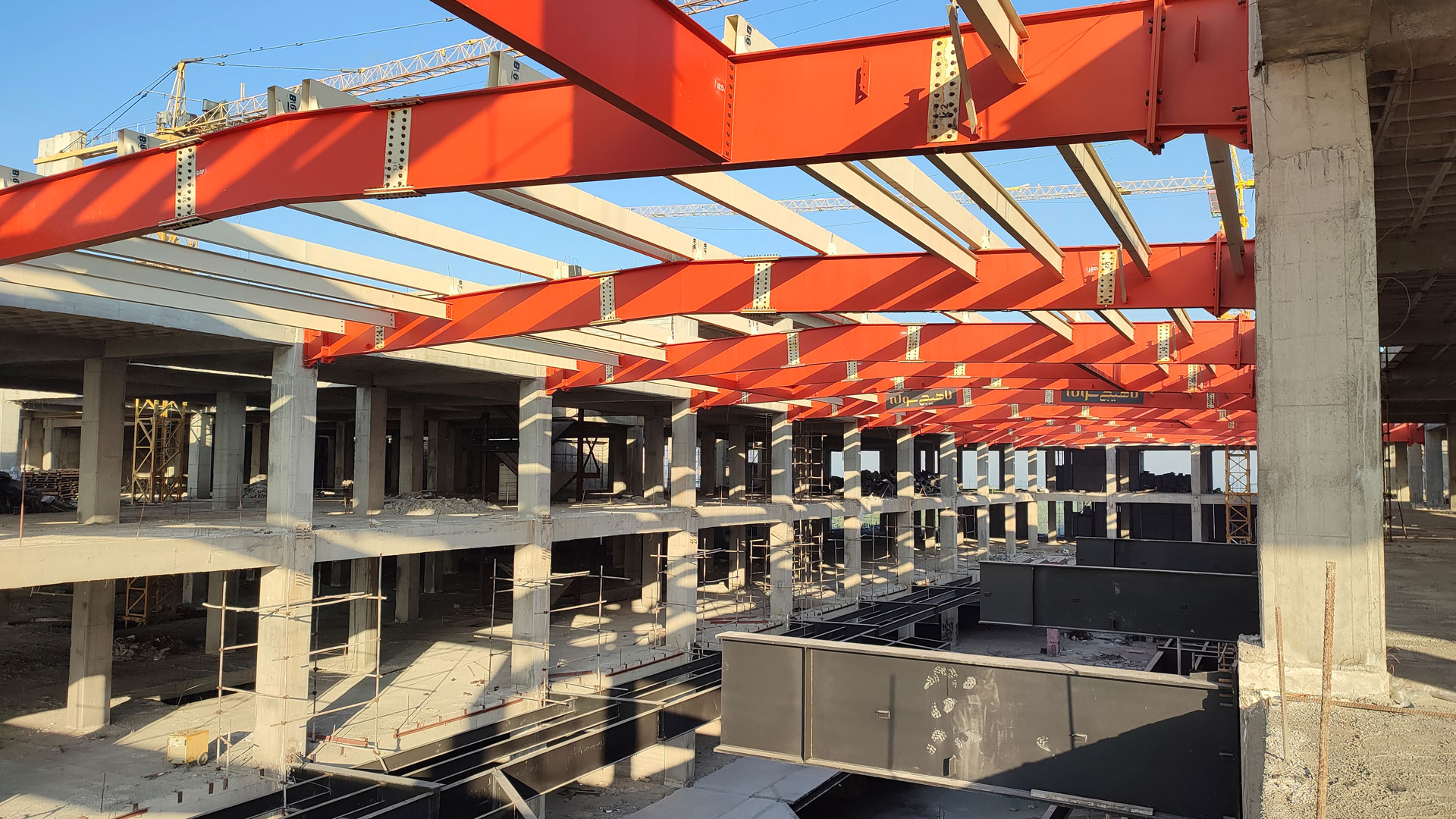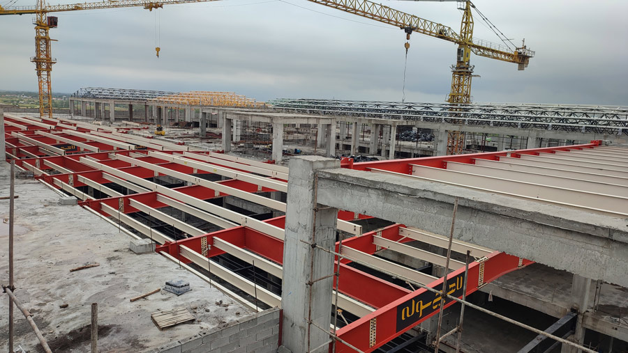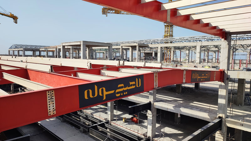 سازه‌های نورگیر سقف با وزن ۳۵۰ تن، با استفاده از اتصالات پیچ‌ومهره‌ای اصطکاکی و اتکایی طراحی و اجرا شده‌اند. لاهیج سوله، رنگ‌آمیزی تمام قطعات را با رنگ زینک کرومات و در ضخامت ۱۲۰ میکرون انجام داد. تا علاوه بر زیبایی بصری، دوام و مقاومت بسیار بالایی در برابر شرایط محیطی تضمین گردد.